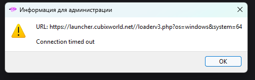 - Интересующий вас вопрос:запускаю лаунчер пишет вот это как исправить пару днеи даже сайт cubix не работал ша вроде норм но тоже лаучер не запускаеца удалял игру минял сеть ничего не помогает могу запустить толко через vpn