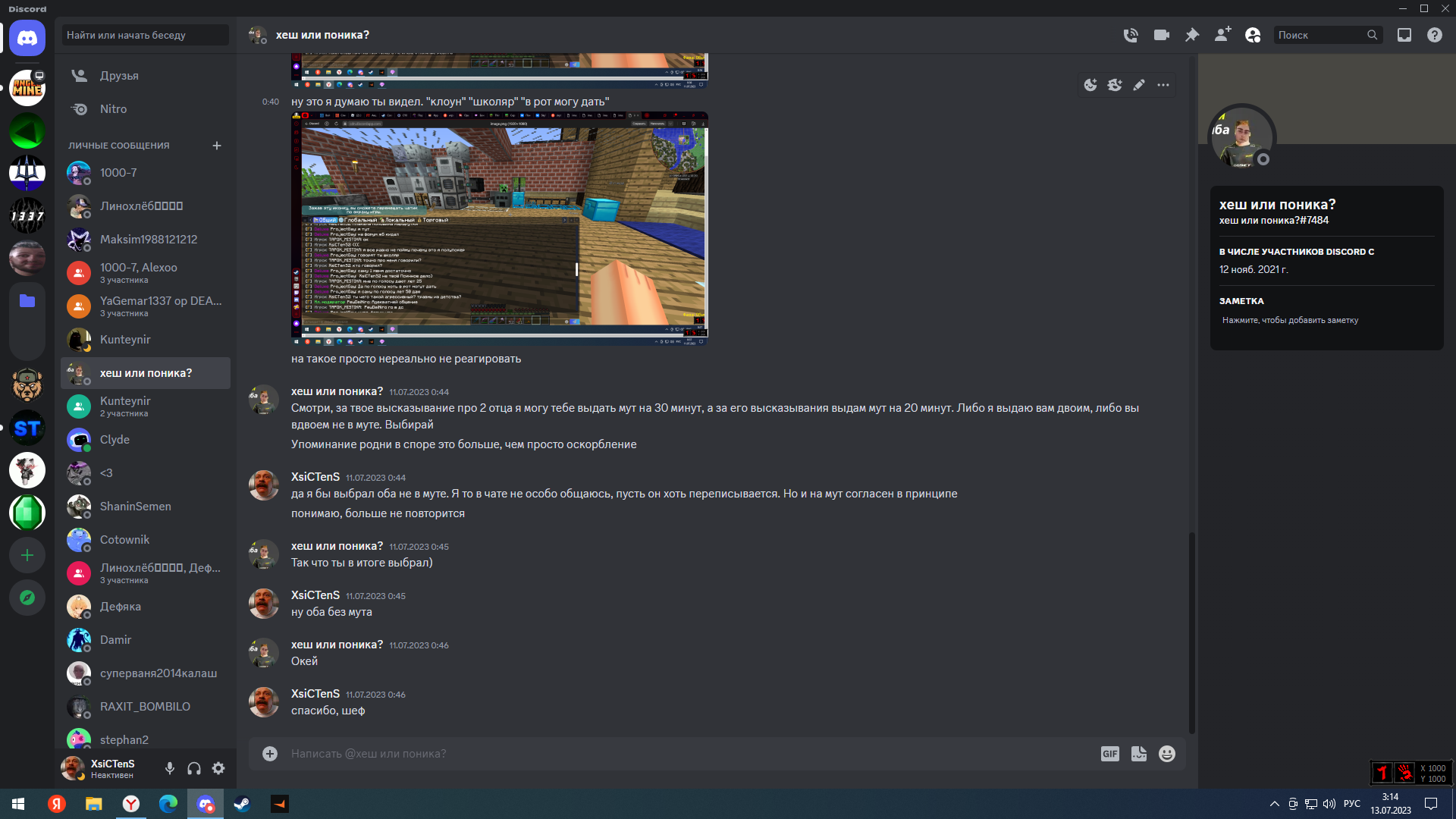 - Человек спамил в чате, хвастался и так далее, в ходе чего возникла небольшая словесная перепалка, в ходе которой я старался не поддаваться на провокации. Прошу заметить, что человек начал агрессировать и далее так же оскорблял меня, на что я не повёлся и не агрессировал в ответ.