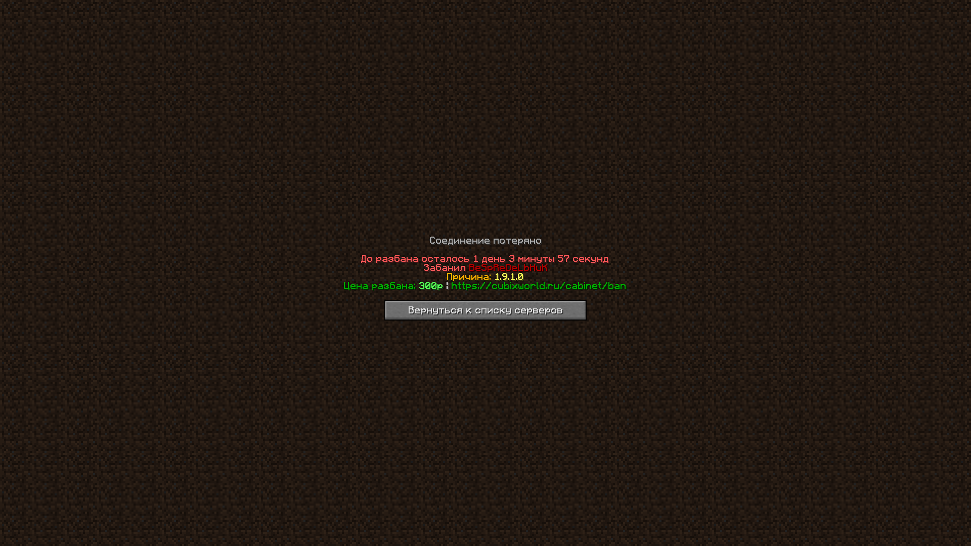 - Ник забанившего: BeSPReDeLbHuk