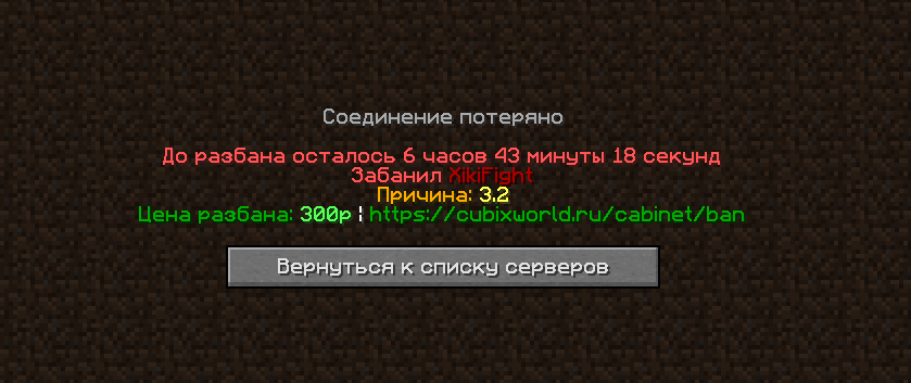 - Описание ситуации: Был выдан бан за 3.2 с моей стороны нарушений не было. Так же не могу купить разбан пишет что я не забанен. Даже если я что-то сделал но забыл просто я не знаю в чем именно причина. Надеюсь на разбан так как бан первый раз, если я был виноват извиняюсь.