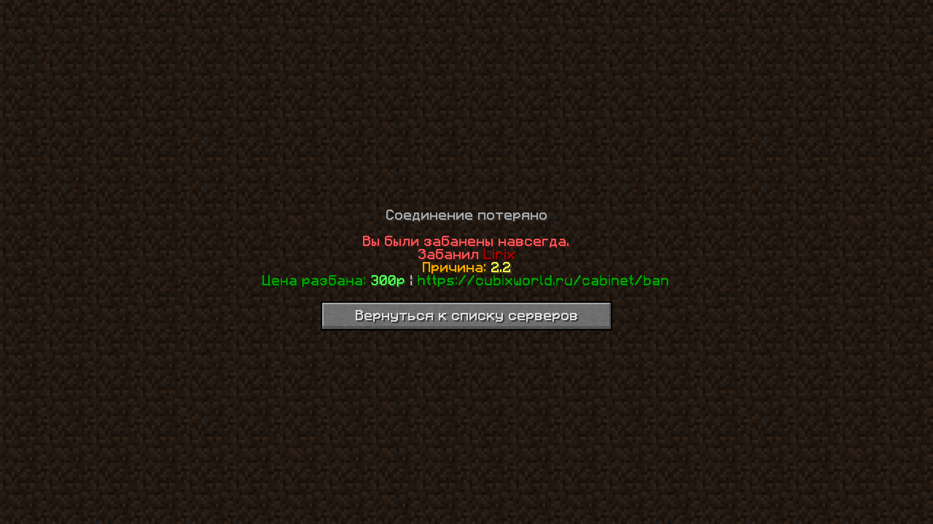 2.ситуация такая 9 мая в 12 часов по Москве мой друг в выпившем состоянии без моего ведома зашел на сервер и написал в чат оскорбительные слова в сторону админа и за это мне был выдан бан навсегда, прошу простить мою неосторожность и доверчевость и хотя-бы сократить бан.