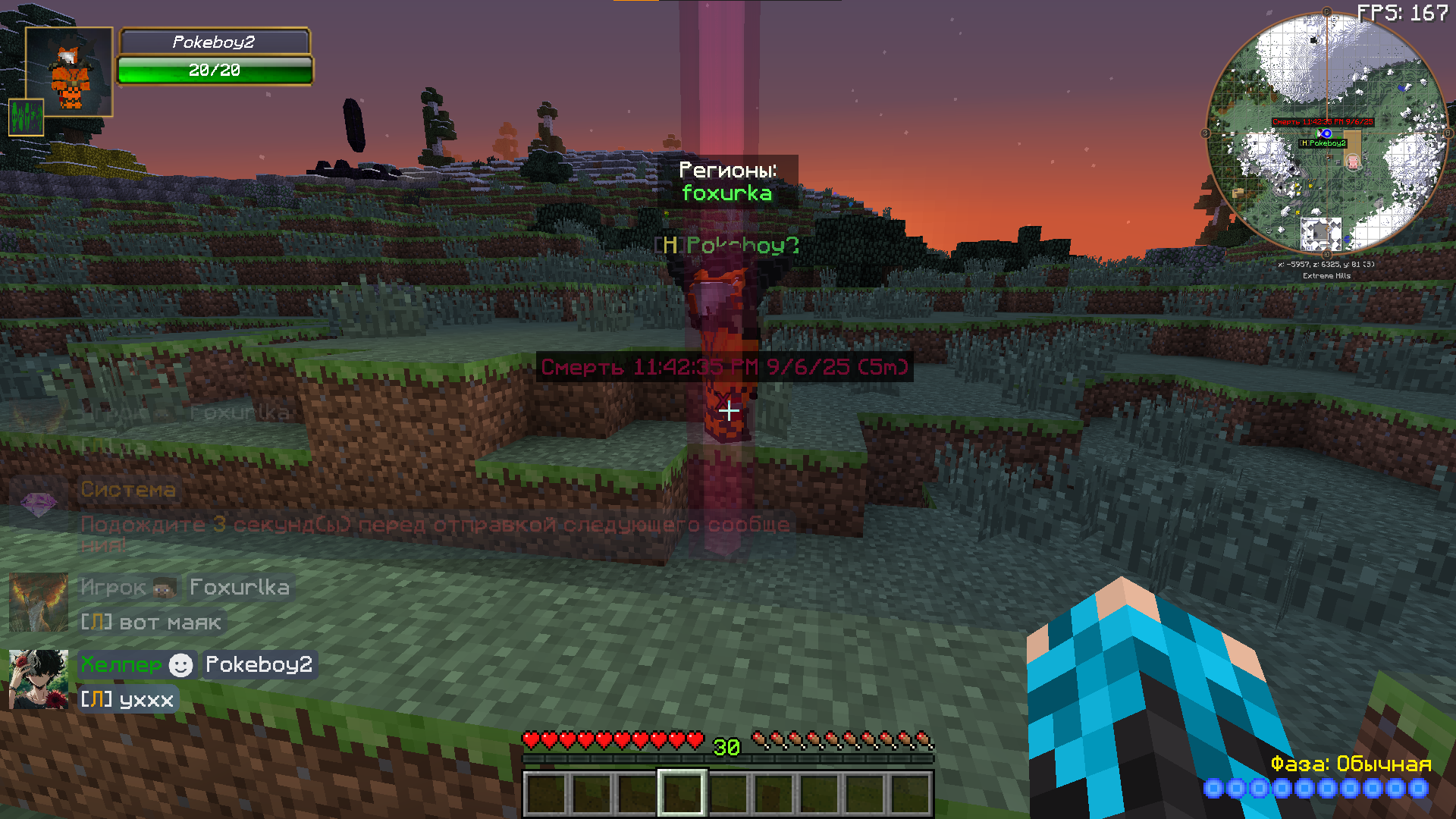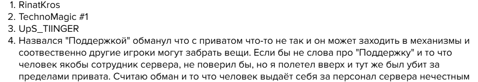 - Игрок начал закидывать меня непонятными золотыми сферами в невидимости, сломал часть местности в непосредсвтенной близости от региона, после чего поджидая убил и вышел из игры.