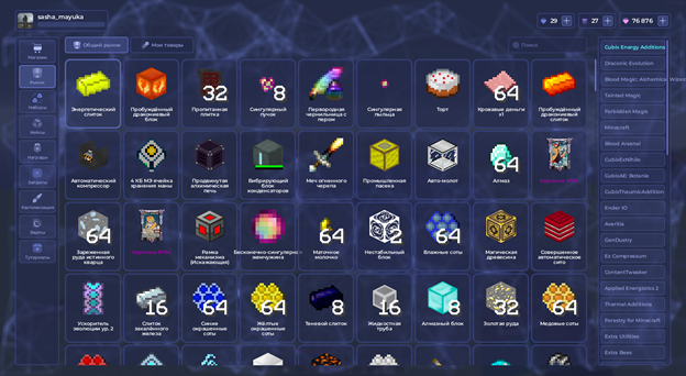 Для начала, что же такое рынок - это многопользовательский магазин для  игроков, в котором каждый может выставить свои товаров и заработать кубиксы.