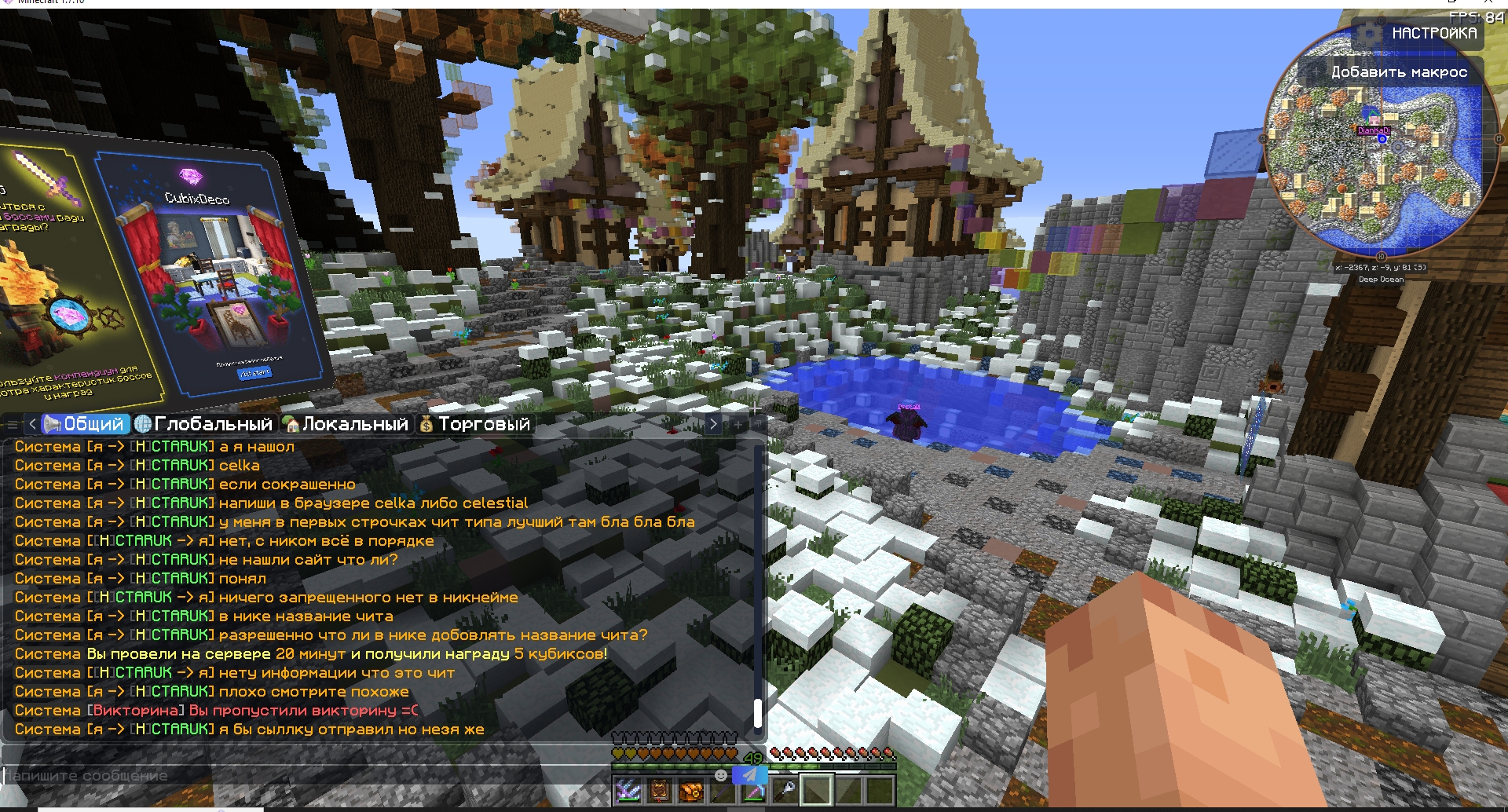 - Описание ситуации:Я увидил ник где написано название чита а тоесть celestal< это чит внизу я все прикрепил как общалься с хелпером и все остольное