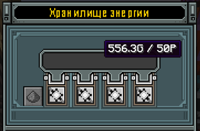 Внутри АЕ Хранилища есть интерфейс, который показывает, сколько энергии накопилось. При нажатии на кнопку с Порохом, Хранилище перестает передавать энергию в механизмы. Лучше ничего не трогать