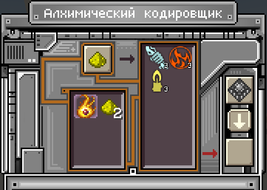 Положить предмет, из которого делается нужный вам другой предмет. Выбрать предмет и нажать на стрелку, чтобы шаблон был закодирован. В механизме указаны и аспекты, которые необходимы быть в МЭ сети, чтобы предмет был создан через АЕ Алхимический преобразователь.