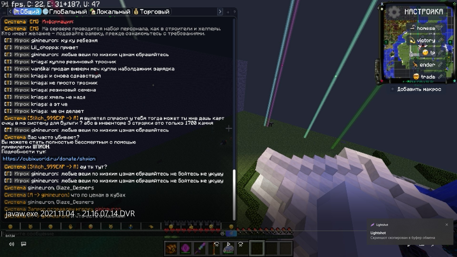 - Описание ситуации:спам в глобал чат сообщение торгового характера