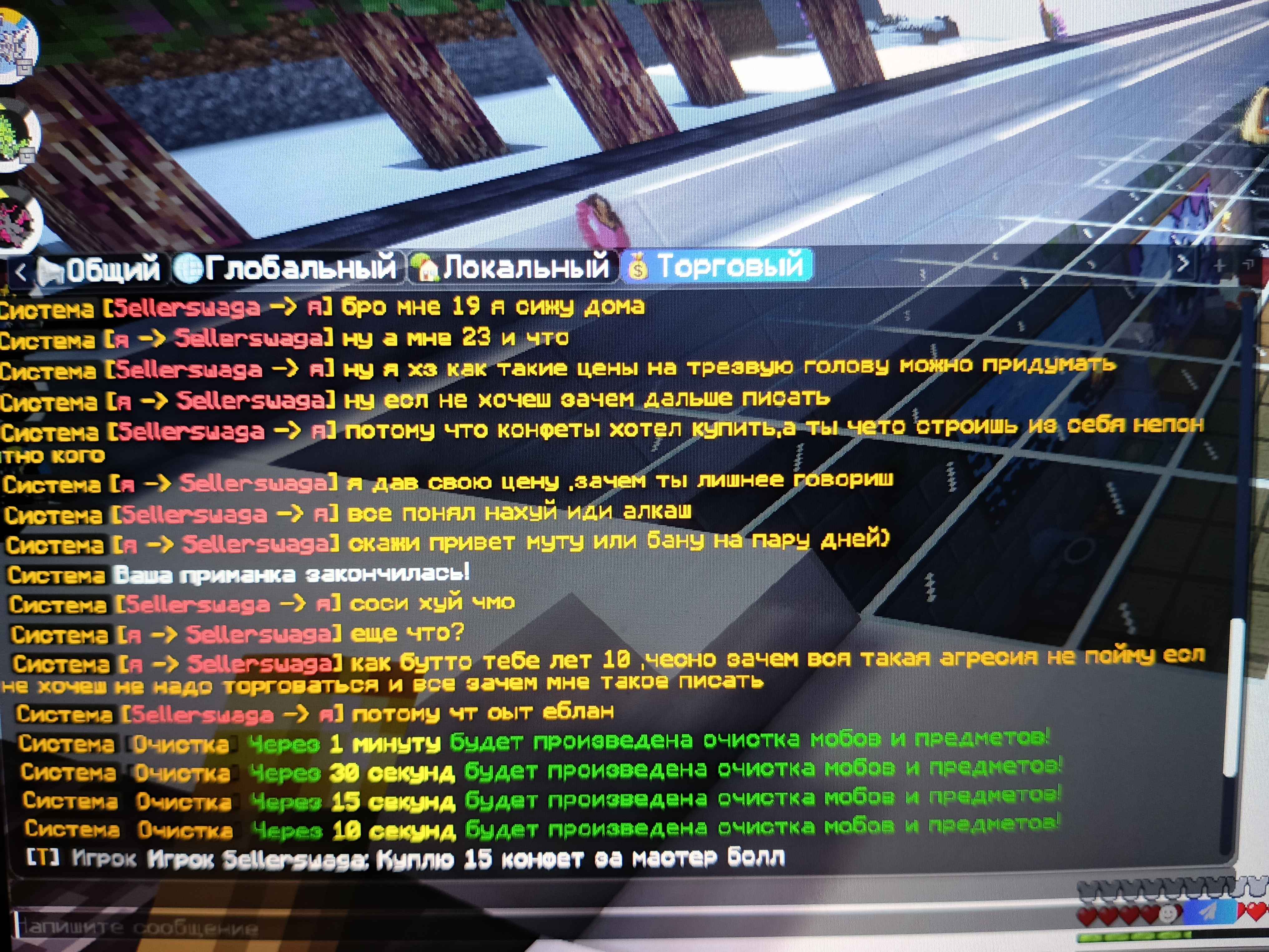 Описание ситуации:Вот ситуация: во время общение с даним человеком когда мы торговались и когда ему не понравилась моя цена за предмет который он хотел купить