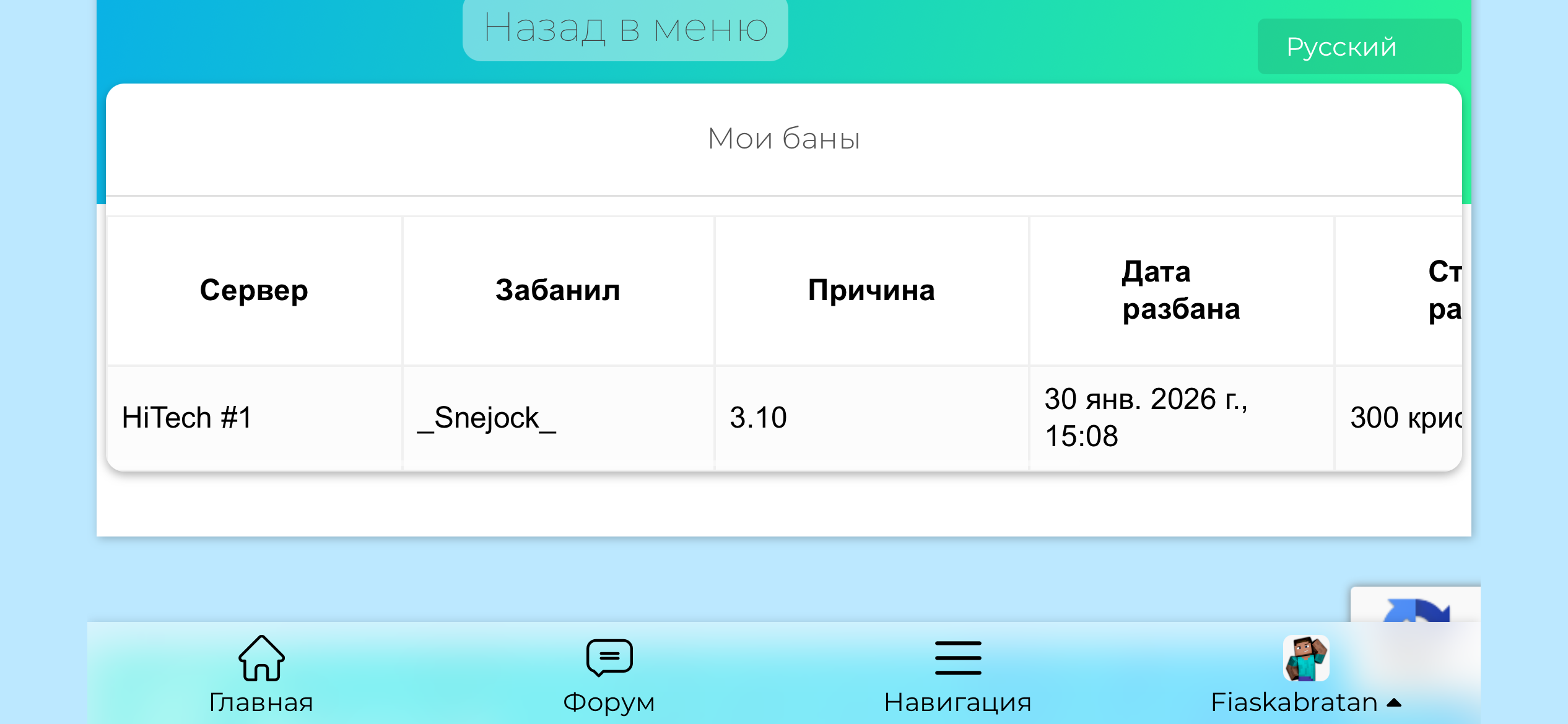 3. Скрин того, что вы забанены: