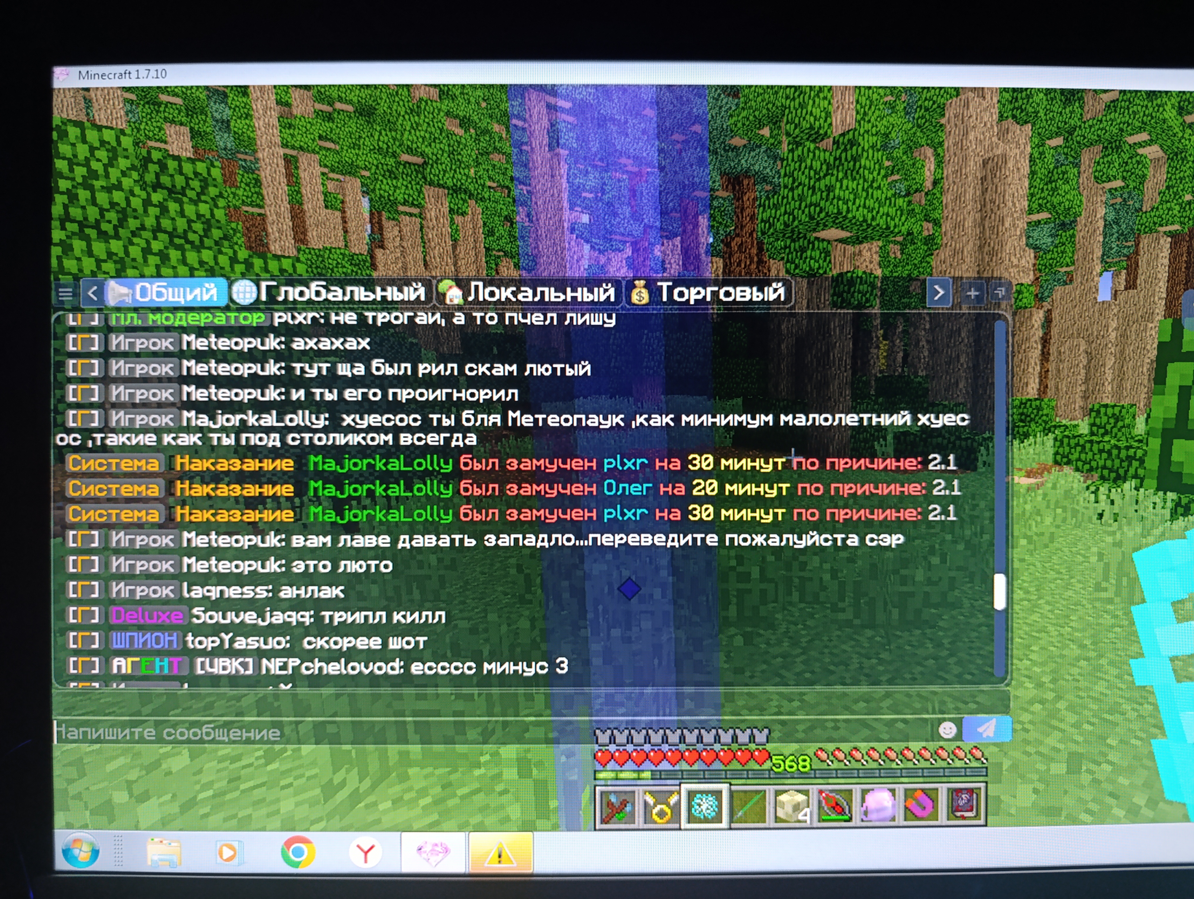 - Описание ситуации:Считаю что данное сообщение подпадает под 1.13, "запрещена любая коммерческая деятельность", Глобальный чат не для того, чтобы продавать свои личные вещи!
