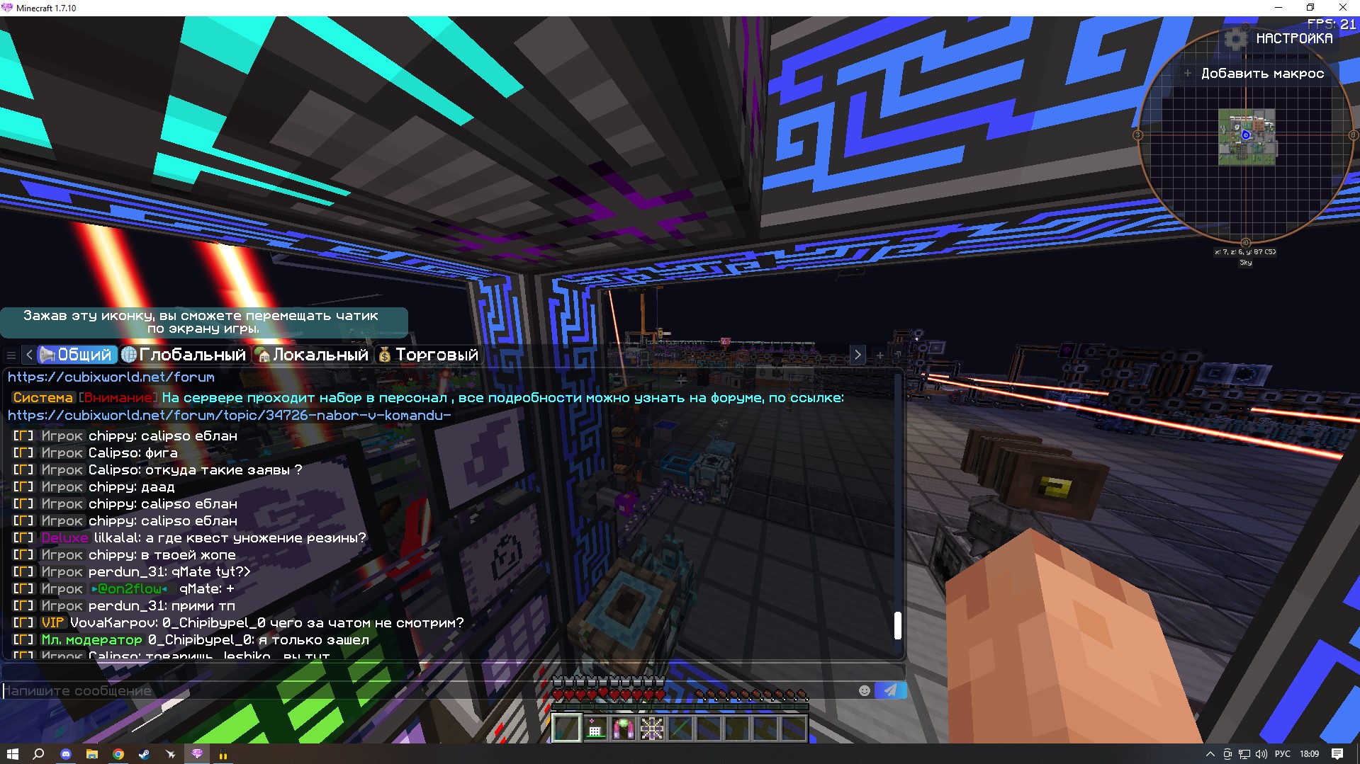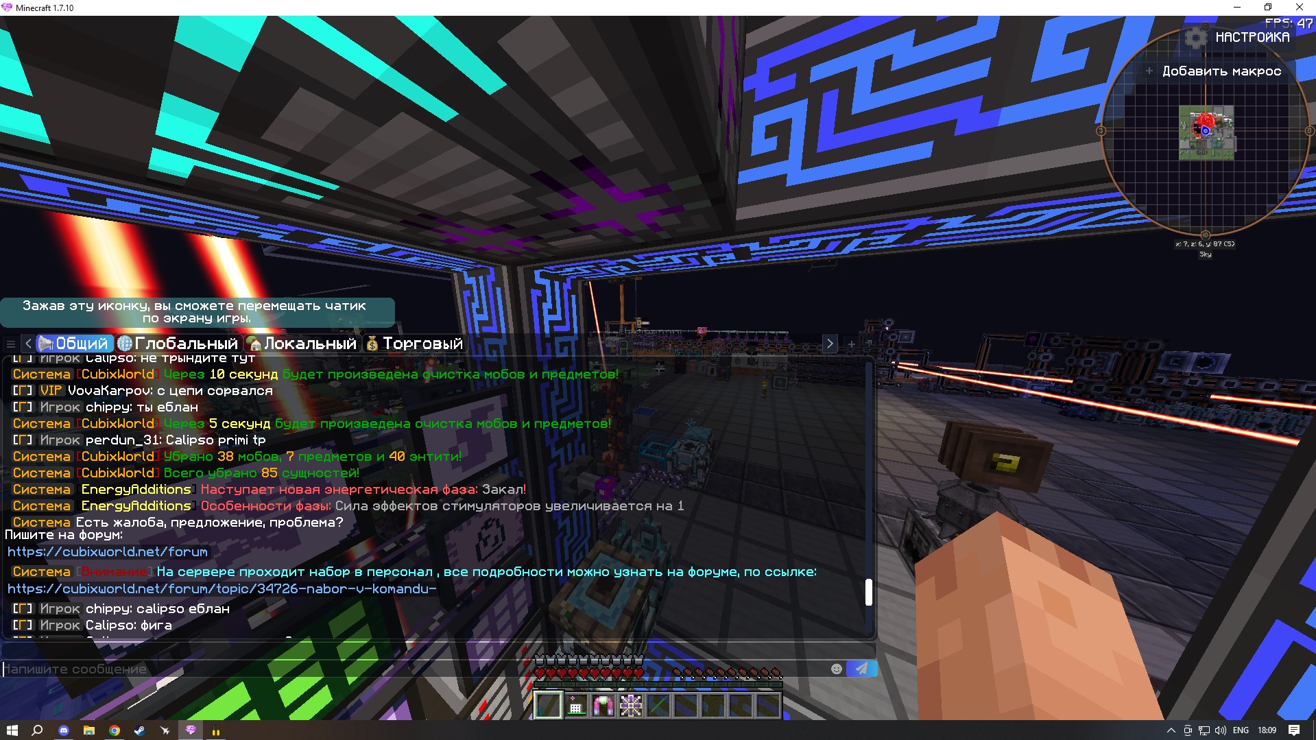 - Интересующий вас вопрос: Давненько приметил баг связанный с мистической оранжереей. В общем беда такая, что она отключает от себя "подающий" и "забирающий" в неё и из неё механизмы. Изначально у меня были подключены к ним МЭ шины импорта/экспорта. Оранжерея начала в определенный момент переставать работать. Решалось это вытаскиванием-втаскиванием карты ускорения в шину, после чего ресы опять исправно подавались и забирались какое-то время. Решил попробовать трубы из мода EnderIO - та же история, но немного реже. Оранжерея работает несколько часов, ресы поступают, НО потом труба просто отсоединяется(как если выставить в коннекторе для труб "отключено"). Решение одно - ломать и ставить заново трубу..... В общем надеюсь поможете с решением